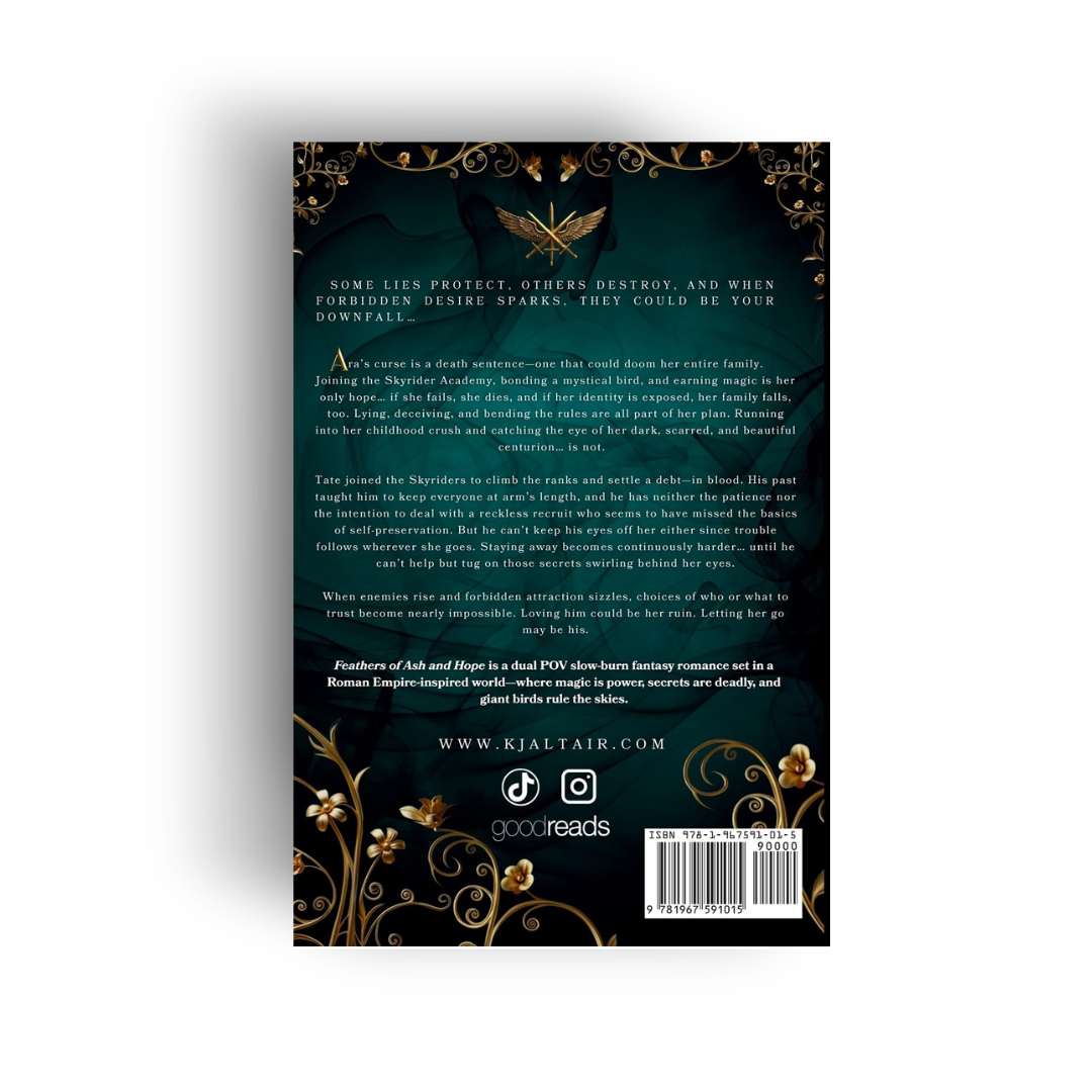 Feathers of Ash and Hope is a dual POV slow burn fantasy romance set in a Roman Empire-inspired world—where magic is power, secrets are deadly, and giant birds rule the skies.
